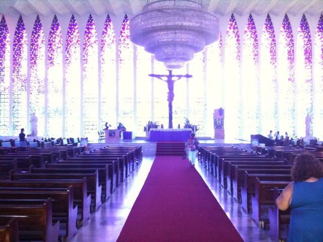 Fomos ao Santuário Dom Bosco. É realmente um lugar muito lindo. Os vitrais dão um efeito único, sem contar o maravilhoso lustre.