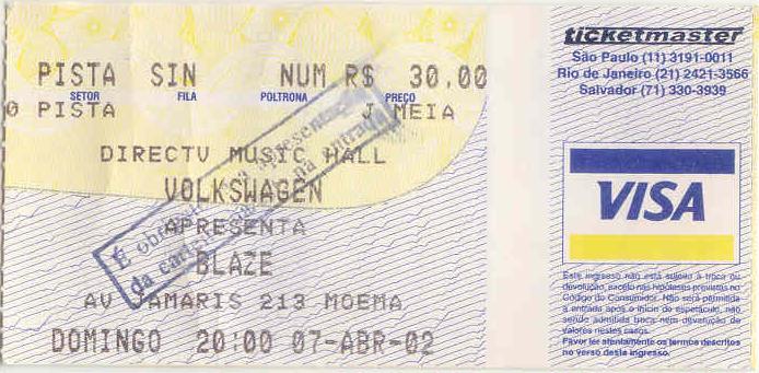 Era um domingo, dia 07 de abril de 2002, quando fui pela segunda vez ao Directv Music Hall (hoje chamado Citibank Hall) assistir a um show! Por coincidência, cheguei exatamente na hora da abertura da casa, e consegui me esgueirar por entre o pessoal e chegar até a grade! Quem conhece a casa sabe que ela não é das maiores, e que a entrada é lateral ao palco, o que facilitou o trabalho.
