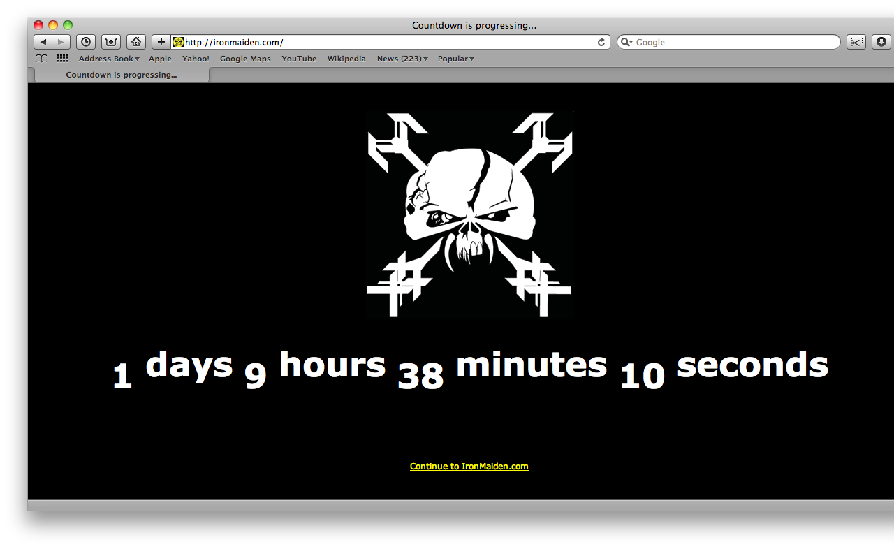 estou viajando, mas não podia deixar de criar este rápido post. O site oficial da Donzela de Ferro está mostrando desde ontem, sábado, uma contagem regressiva que será finalizada amanhã, segunda, as 20h00 (horário de Brasília):