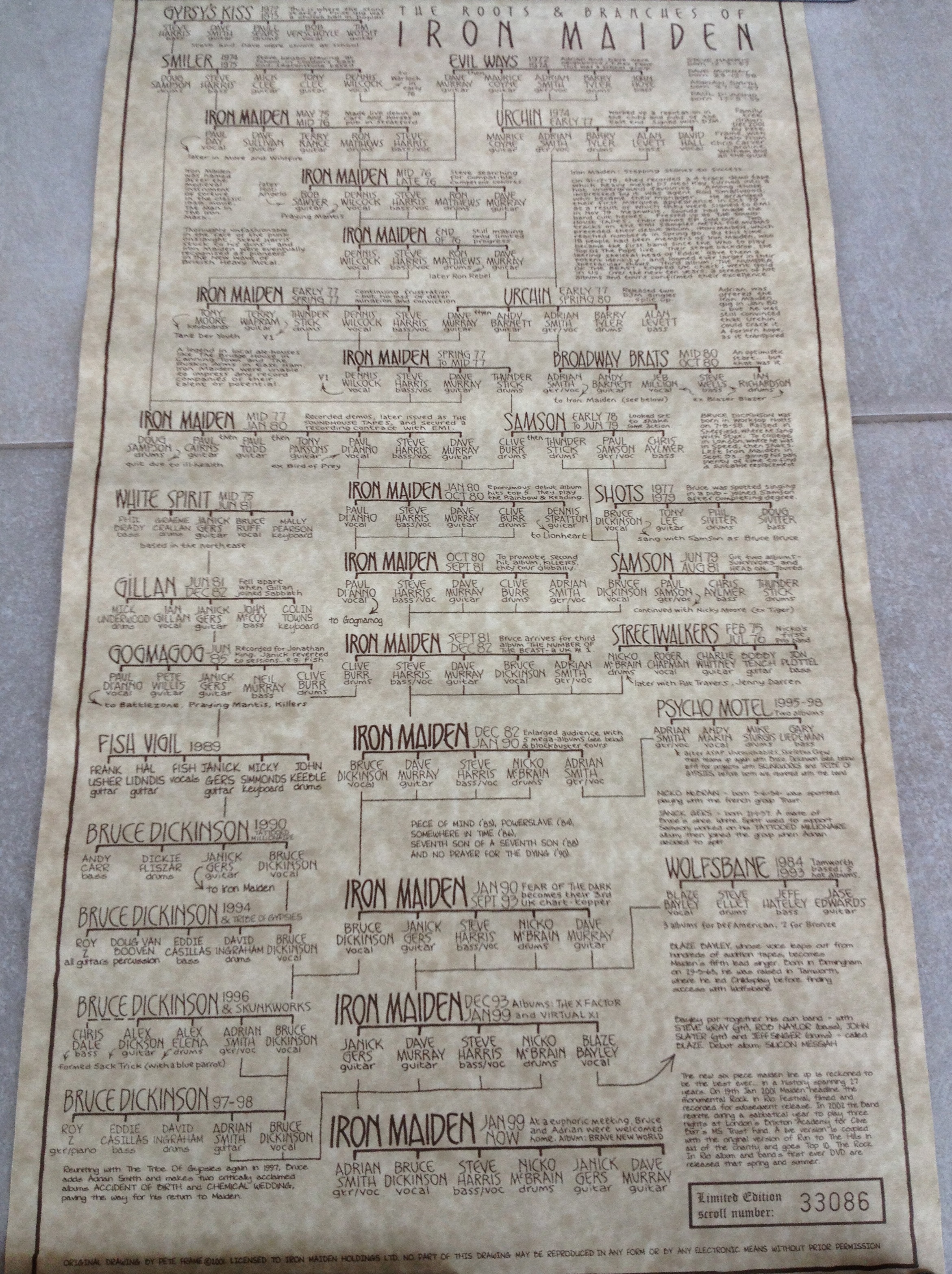 O “family tree”, que é uma atualização do original do A Real Dead One, de 1993, traz informações até os triunfais retornos de Adrian e Bruce à banda para a confecção do Brave New World