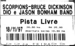 Pois é… em 1997, com apenas 25 reais dava pra ver: Scorpions, Dio, Bruce Dickinson e Jason Bonham !!