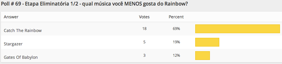‘resultados-poll-69-etapa1’ Publicado domingo, junho 30th, 2013 at 962 × 220 em Resultados Polls # 69 e 70: Stargazer eleita melhor música do Rainbow com Dio ‹ Voltar