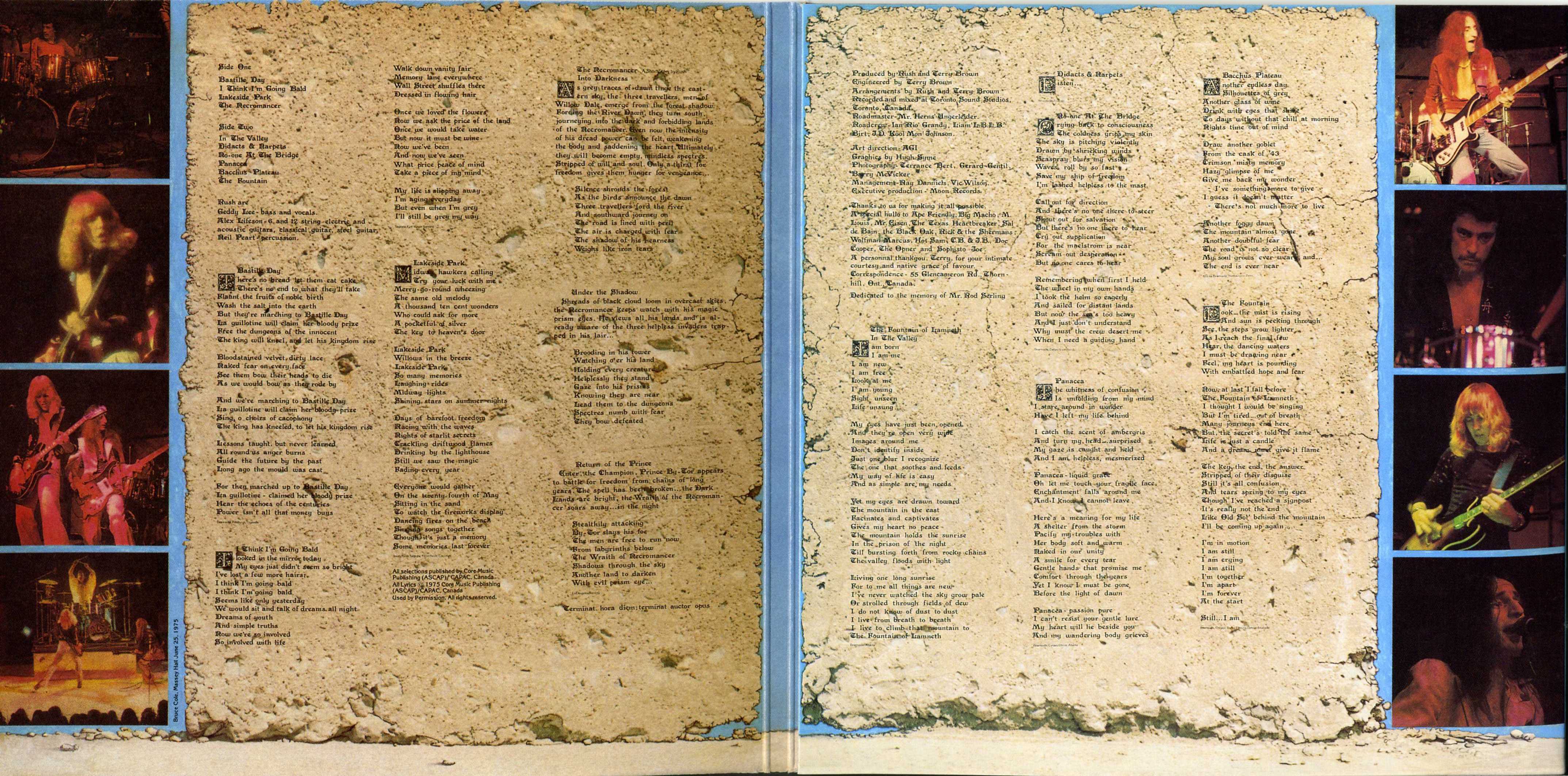 Na parte interna da capa, estão impressas as letras e uma sequencia de fotos capturadas no show de encerramento da turnê anterior no Massey Hall, em Toronto em 26 de Julho de 1975.