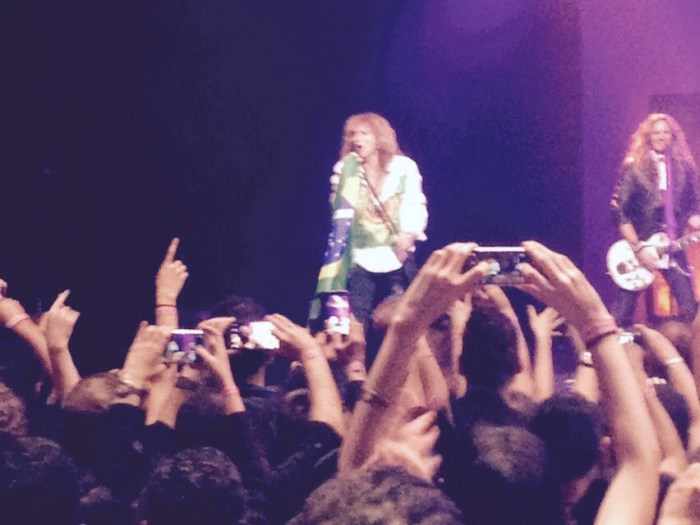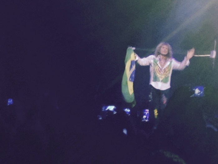 O som está um lixo. David Coverdale pegou uma bandeira brasileira e usa de adorno ao pedestal do microfone. A tentativa de cantar um parabéns foi em vão, a coisa não deu certo.
