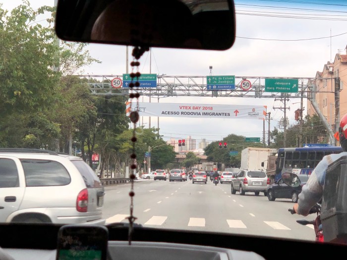 Acabei por chegar cedo no evento. A chegada, de taxi, foi bem tranquila. O local, SP Expo (também conhecido na cidade como Centro de Convenções Imigrantes) recebe apenas eventos de grandíssimo porte. Eu confesso que não sabia que este era um dos eventos para encher um local como este. Há faixas de instruções para acesso ao evento pela Avenida Ricard Jafet / início da Imigrantes.