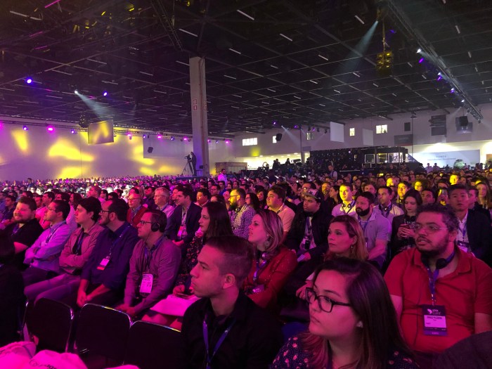 12h18: início do evento com apresentações iniciais de patrocinadores. O local lotou. O Bruce deve entrar logo depois destes patrocinadores . Fecho a parte 1 da cobertura aqui e voltarei com a parte 2 com a resenha da keynote.