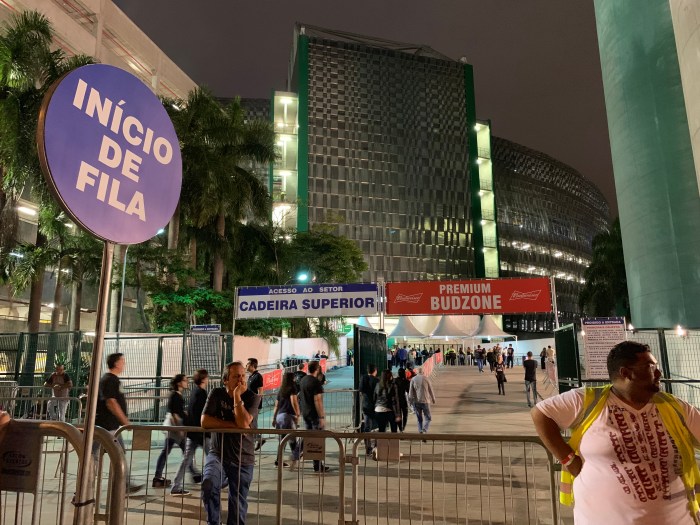 Se o caminho de ontem se deu com a torcida do Palmeiras e quem estava vindo ao show, hoje foi com a torcida corinthiana e os fãs. O movimento é bem tranquilo e está tudo muito bem organizado. A organização do show está de parabéns, e para arrancar isso de mim, só sendo realmente algo no nível que venho conferindo desde ontem. A única coisa são os cambistas, que são muitos e evidentes. Isso parece não ter solução no Brasil.