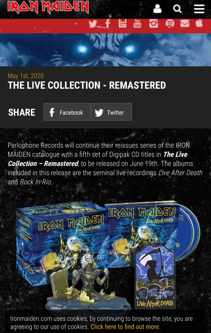Ainda em relação a banda pra 2020, depois vamos ver se Flávio e Rolim comentam a notícia que vai sair pela gravadora Parlophone Records mais dois títulos da banda que serão relançados em versão remasterizada. As bolas da vez são Live After Death, de 1985, e Rock in Rio, que traz a gravação da apresentação ao vivo da banda no festival carioca em 2001. O lançamento ocorre em 19 de junho. Será que vão ter vinil? Ou só CD como anunciado no site?