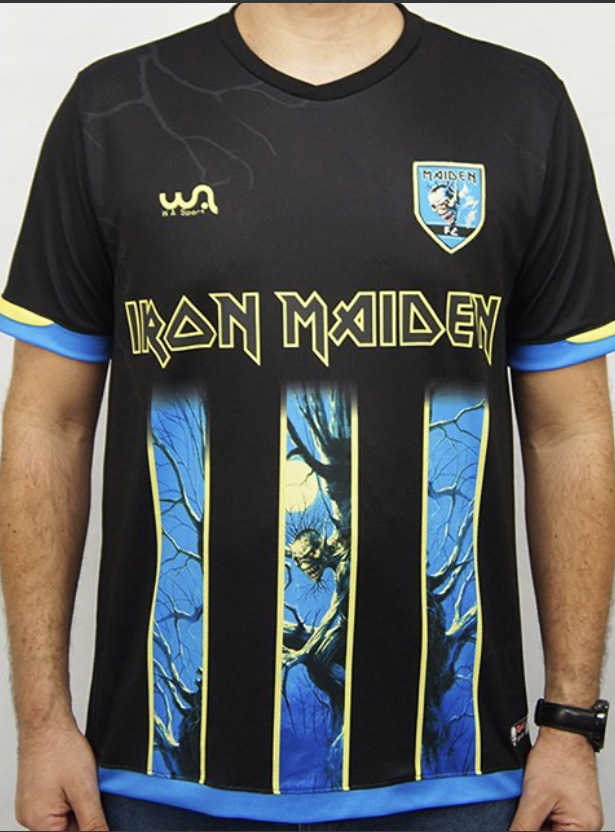 A coleção que verifiquei no site – e já disponível no site da WA Sport – possui 3 camisas de futebol. Cada uma homenageia um álbum da banda – Piece Of Mind (1983), Powerslave (1984) que eu considero o melhor de todos os tempos e Fear Of The Dark (1992). Ha outros produtos, mas, se entendi, elas integram o conjunto Maiden FC, que será completo com camisas de outros álbuns. Para mim, o Powerslave estando ali está ótimo.