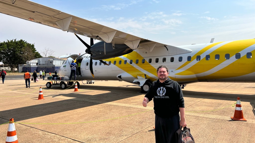 10h00 – aqui estamos – um apavorado, o outro rindo. Mas estamos aqui. Um bimotor ATR com hélices nos levará para Ribeirão! Fotos para a posteridade!!