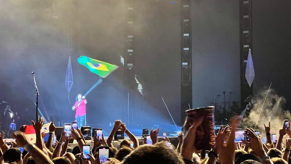 Além disso, o palco “invade” a VIP com uma grande pista, que o Edu já usou um pouco. Eles pediu para a galera acender os células na penúltima música, e o show fechou com Nova Era, que ele falou que era uma homenagem ao Hard Rock (????) e o metal brasileiro.