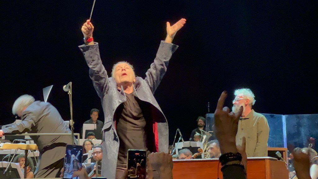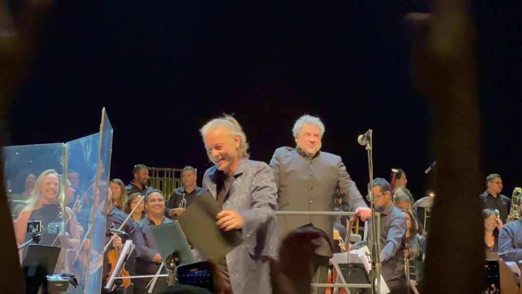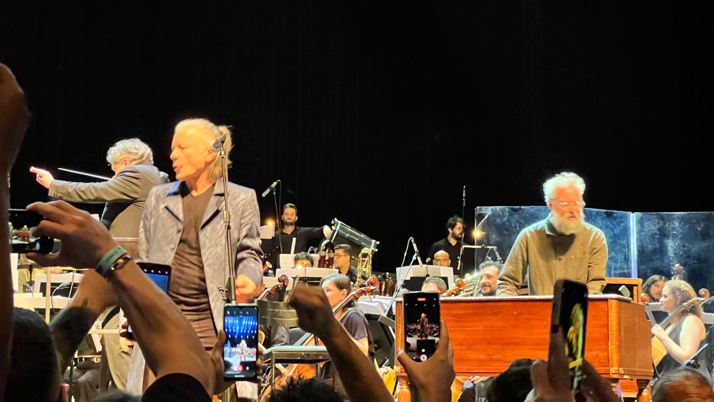 É isso, galera. Com John O’Hara (Jethro Tull) nos teclados, Tanya O’Callaghan (Whitesnake) no baixo, Kaitner Z Doka (Jon Lord, Ian Paice) na guitarra, Bernard Welz (Jon Lord, Don Airey) na bateria e Mario Argandonia (Scorpions) na percussão, Bruce e a orquestra regida pelo experiente Paul Mann prometem transformar o programa na melhor opção que um sábado a noite de um dia até o momento chuvoso pode proporcionar.