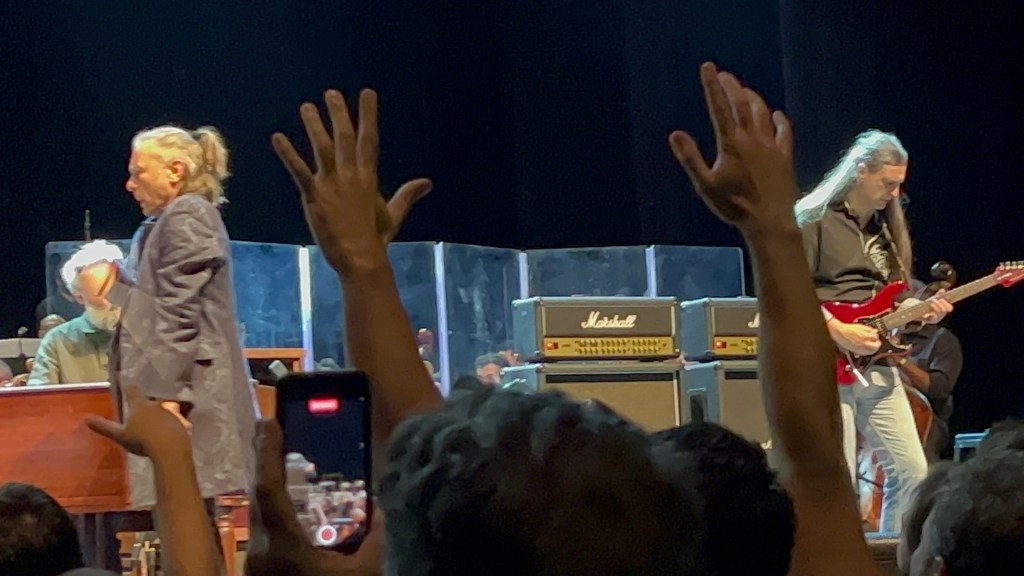 Também queria deixa registrado o quão espetacular foi ouvir Jerusalem. O guitarrista acompanhando Bruce mandou muito bem as linhas de Roy Z e Adrian Smith – eu já estudei essa música na guitarra e os solos são difíceis (para o meu nível). Tirando as músicas solo de Bruce, todo o som estava muito bem calcado no blues do Purple (por razões óbvias). O Hammond estava estalando de lindo!