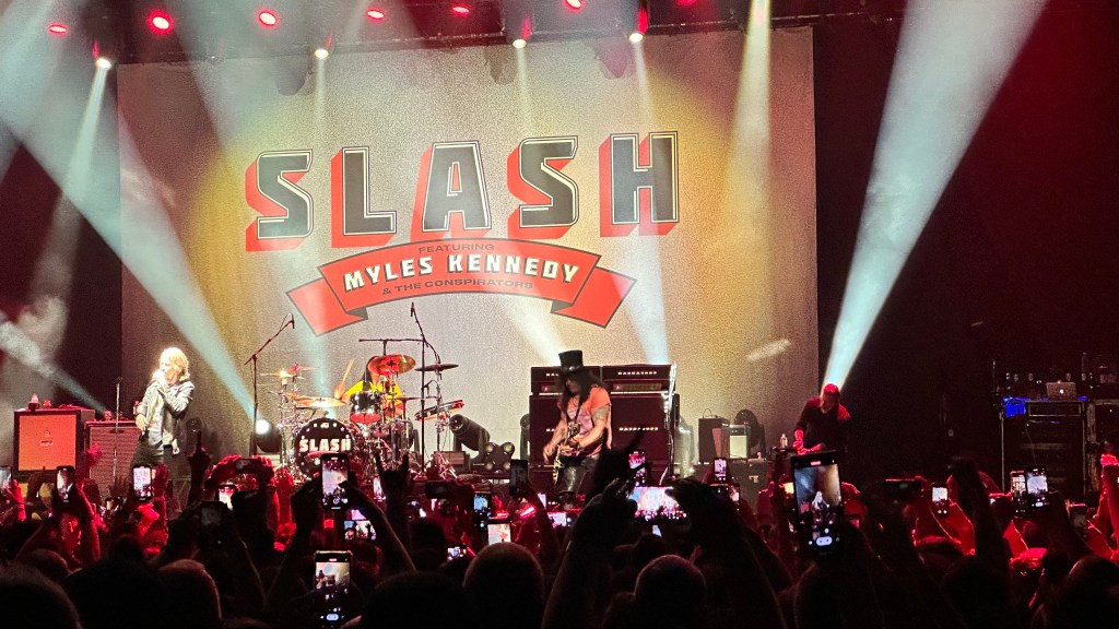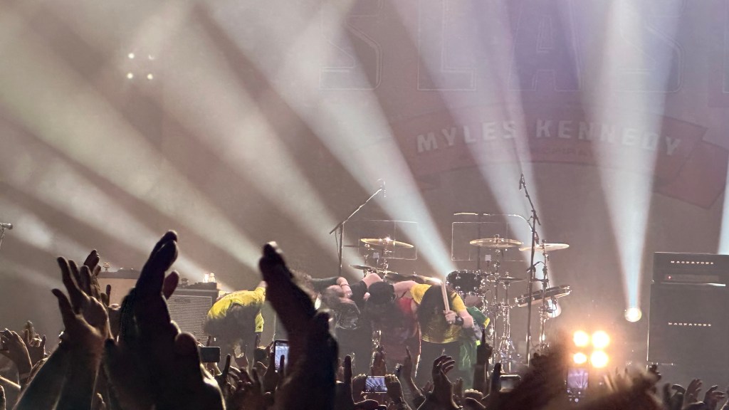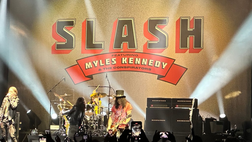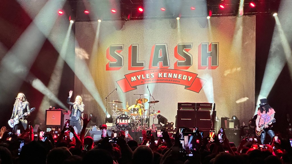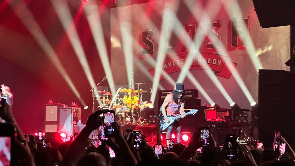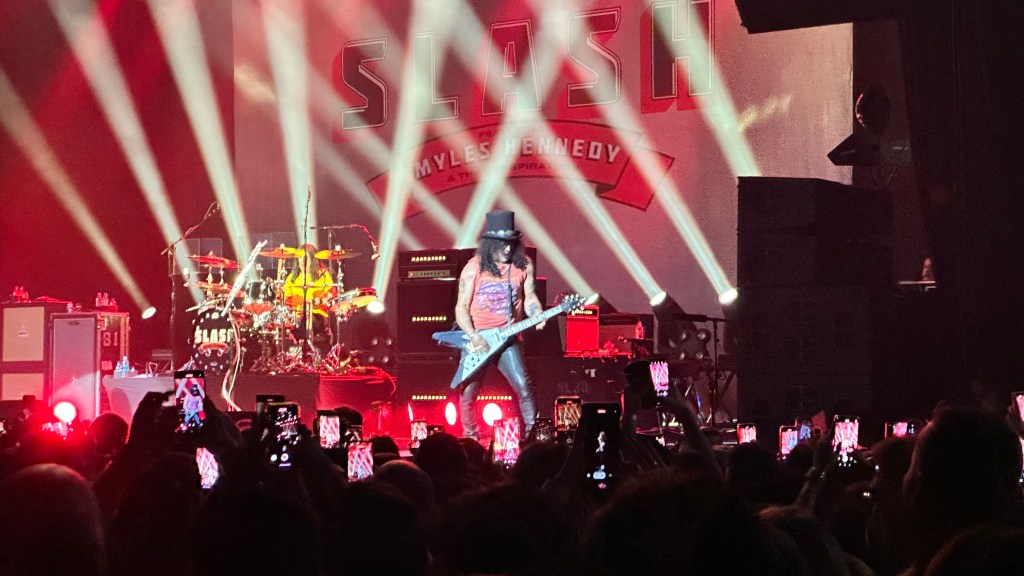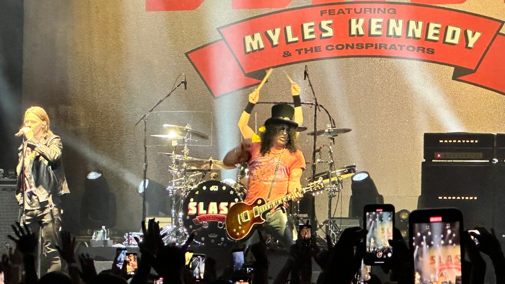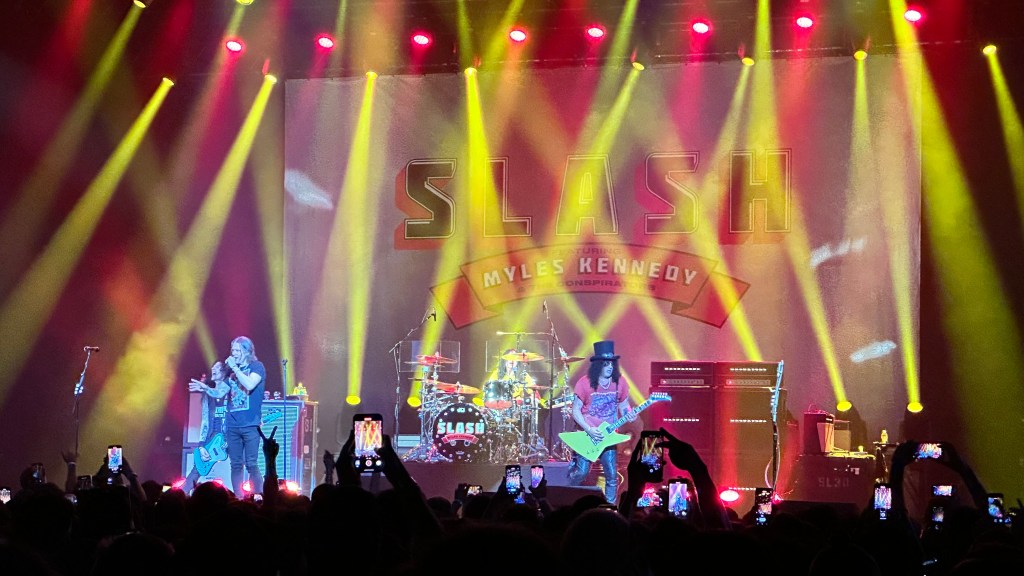 Dessa forma, os fortes álbuns Apocalyptic Love e World On Fire foram, combinados, as bases do set, mas o 4 foi o que teve mais música, afinal, era o álbum foco da tour, lançado em 2022. O set foi completando por poucas outras da carreira solo e um alguns esperados covers – sendo, pelo menos para mim, um mais inusitado com o clássico absoluto do Elton John – que, pelo menos ao meu ver, ficou meio esquisito (vejam – não ficou ruim – Myles segurou bem a voz enquanto Slash sentou para “slidar“.