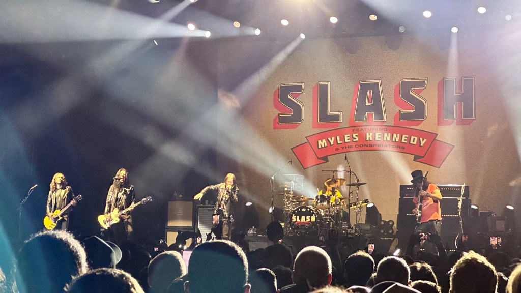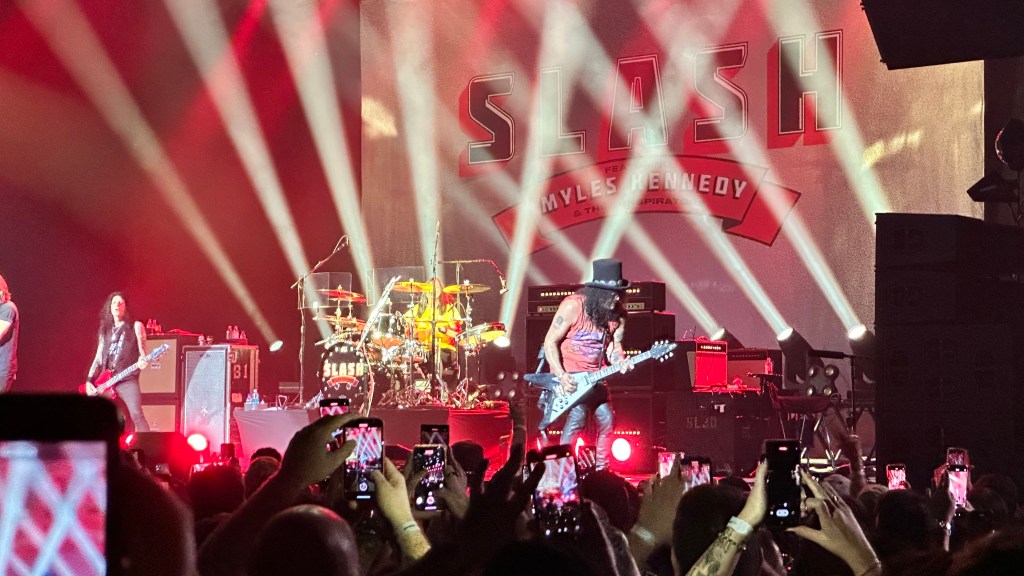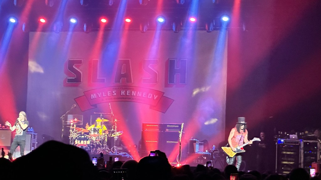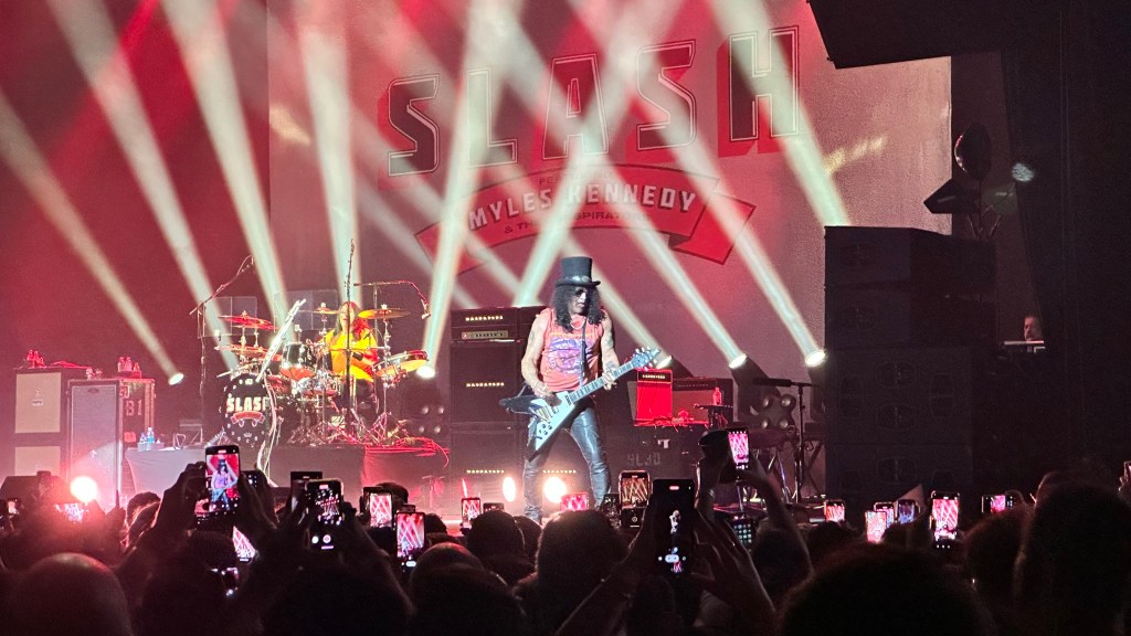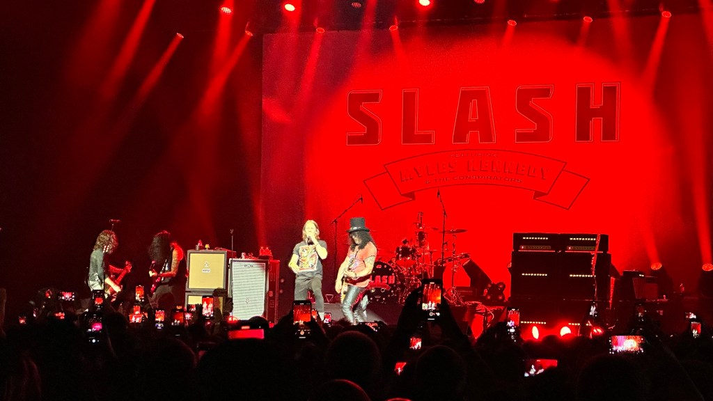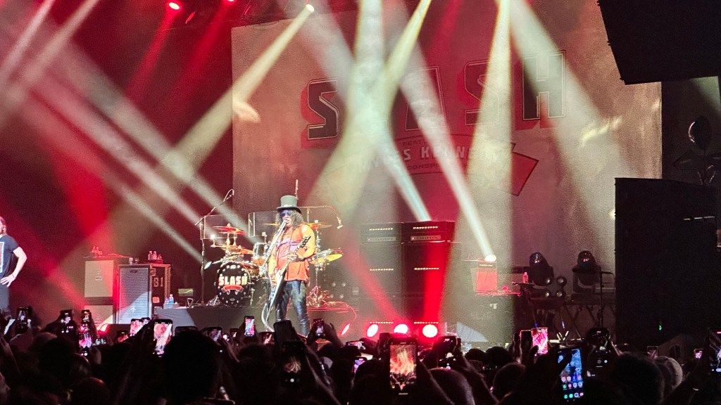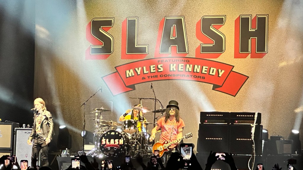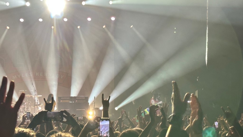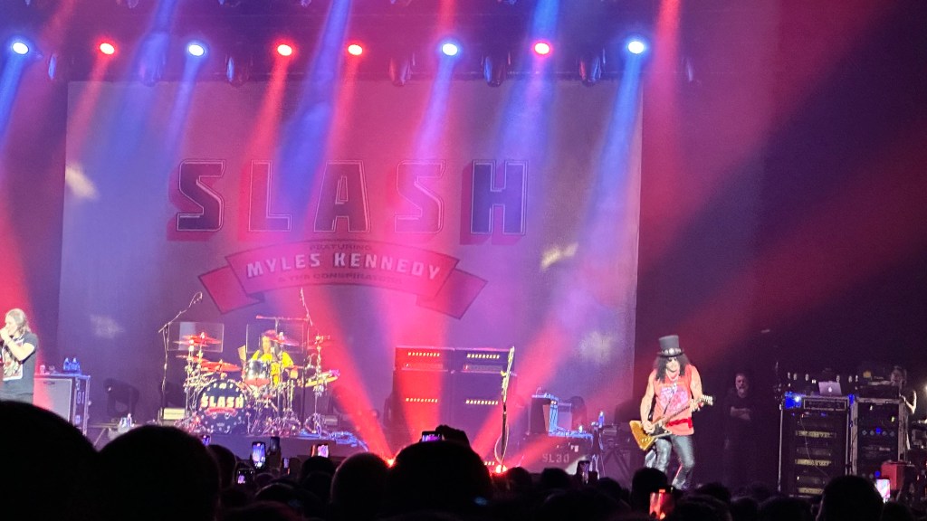 Dessa forma, os fortes álbuns Apocalyptic Love e World On Fire foram, combinados, as bases do set, mas o 4 foi o que teve mais música, afinal, era o álbum foco da tour, lançado em 2022. O set foi completando por poucas outras da carreira solo e um alguns esperados covers – sendo, pelo menos para mim, um mais inusitado com o clássico absoluto do Elton John – que, pelo menos ao meu ver, ficou meio esquisito (vejam – não ficou ruim – Myles segurou bem a voz enquanto Slash sentou para “slidar“.