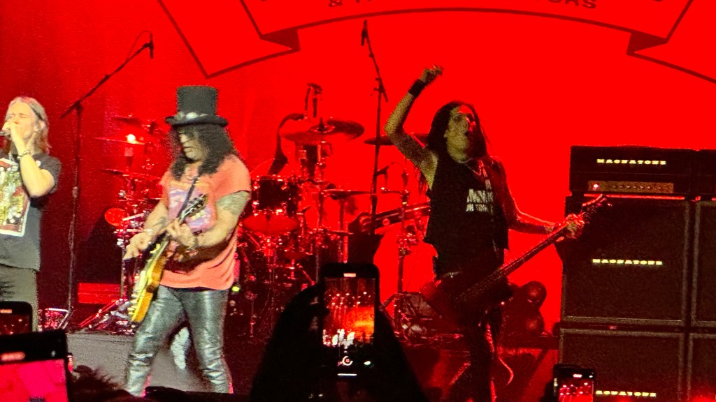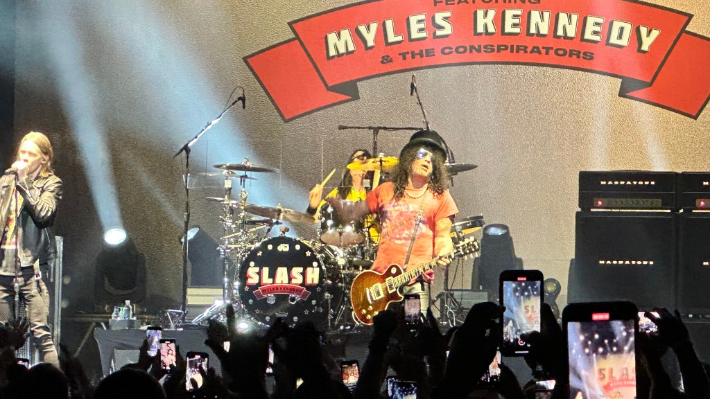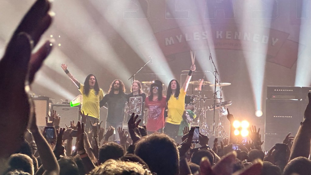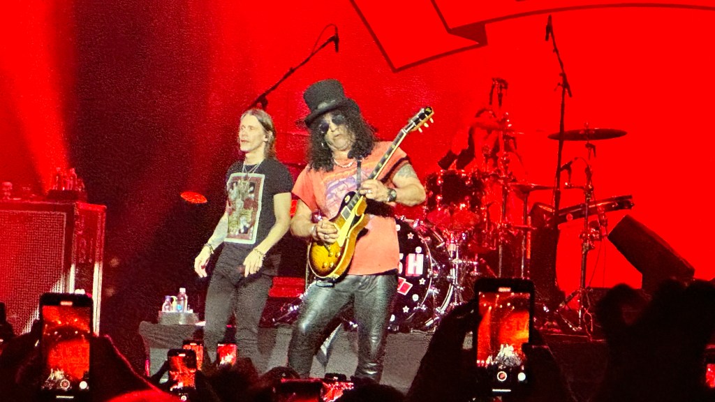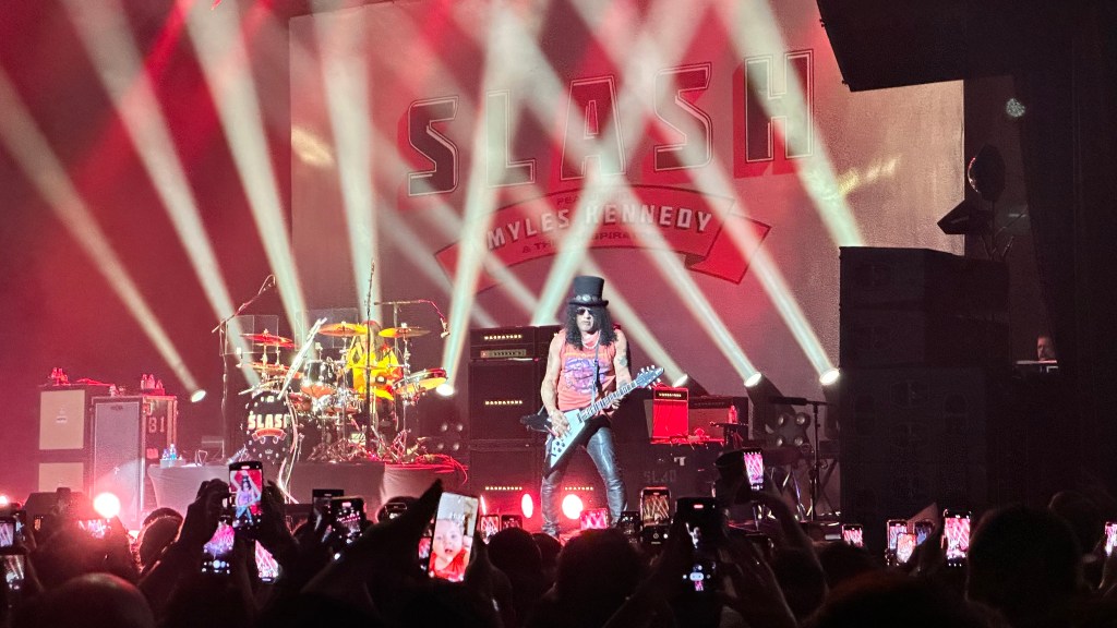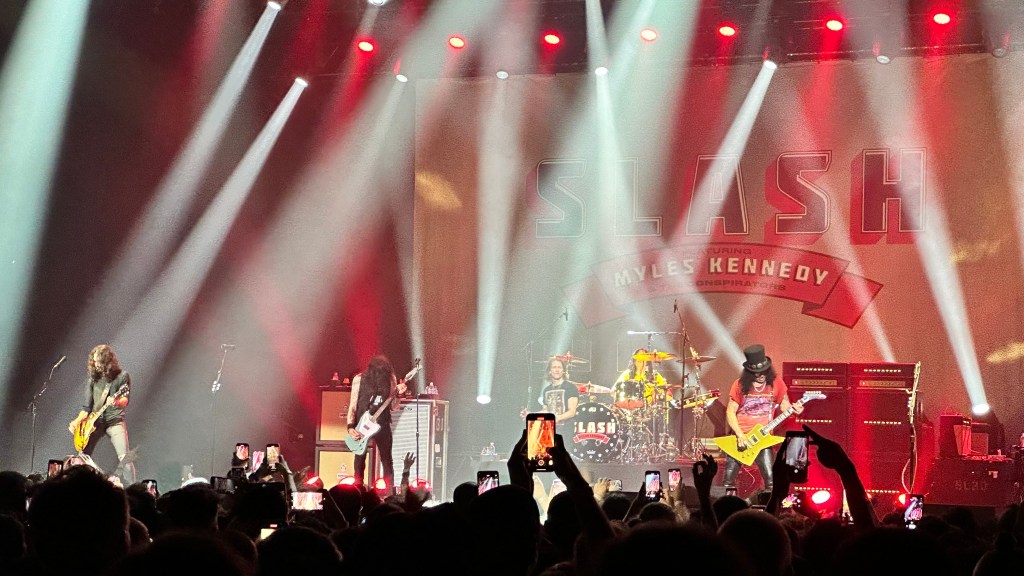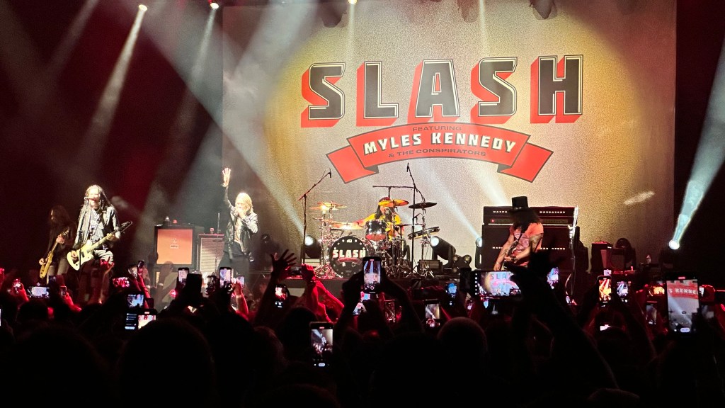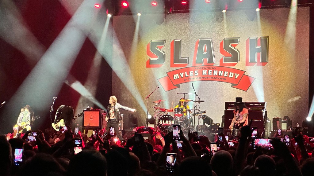 Dessa forma, os fortes álbuns Apocalyptic Love e World On Fire foram, combinados, as bases do set, mas o 4 foi o que teve mais música, afinal, era o álbum foco da tour, lançado em 2022. O set foi completando por poucas outras da carreira solo e um alguns esperados covers – sendo, pelo menos para mim, um mais inusitado com o clássico absoluto do Elton John – que, pelo menos ao meu ver, ficou meio esquisito (vejam – não ficou ruim – Myles segurou bem a voz enquanto Slash sentou para “slidar“.
