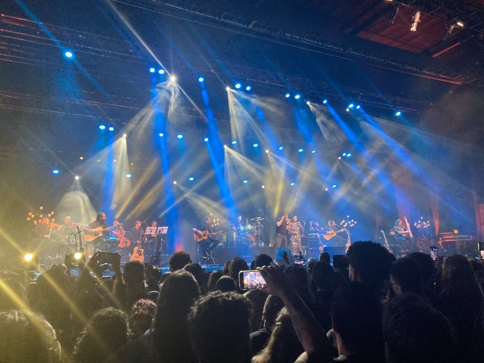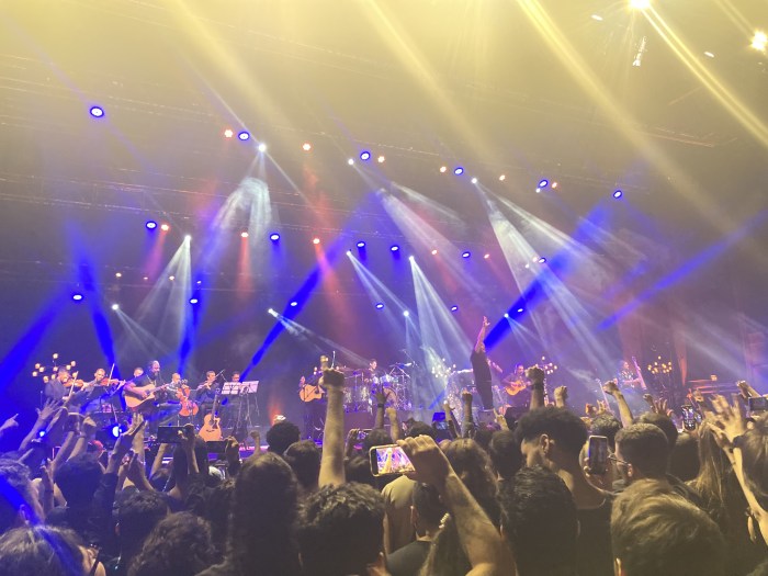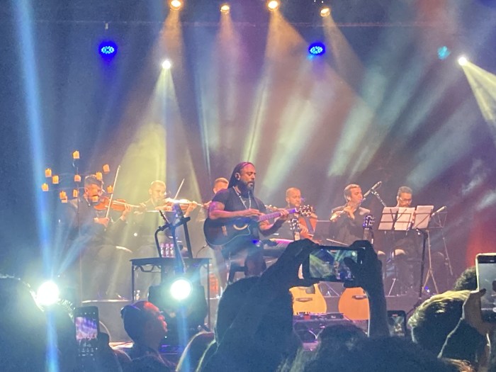 O som estava bem equalizado, era possível ouvir todos os instrumentos, inclusive a orquestra e a percussão, que envolvia, além dos instrumento mais comuns como tambores e sinos (perdão a ignorância, não sei os nomes), um berimbau. Por dois momentos eu ouvi a PA na minha esquerda dar uma estourada, as duas vezes em solos do Marcelo, mas foi algo bem pontual e que não comprometeu a execução de nada. Acho que a maioria das pessoas nem notou a PA estourando.