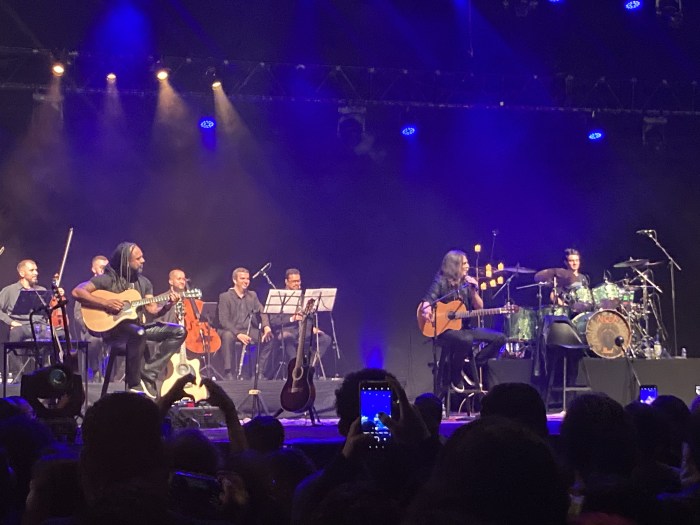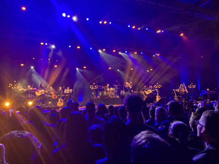 Fui muito curioso para saber como ficariam os novos arranjos e não me aventurei em saber o que eles tocariam. Lá no local achei o Márcio Villas, que estava levando o Felipe, seu filho de 16 anos (e que só compraram ingresso porque eu comentei com o Villas no café do trabalho sobre o show, que por alguma razão ele achava que já estava esgotado). Ficamos no lado esquerdo do palco, bem na frente. A casa estava com mesas montadas do meio para o fundo, ficando a primeira metade reservada para a pista, que mesmo levando o nome de premium, não tinha nenhuma delimitação ou espaço reservado, o que eu achei ótimo, pois sou a favor de lutar pela sobrevivência quem quiser ficar perto da grade. O palco foi totalmente utilizado na montagem da estrutura acústica e, dessa vez, não teve playback de nada (como reclamei no show que fui na turnê do Cycles of Pain). Além de muitos violões, dois baixos acústicos e uma bateria, trouxeram um piano, instrumentos de percussão e sexteto de orquestra, com violino, cielo, flauta doce e oboé.