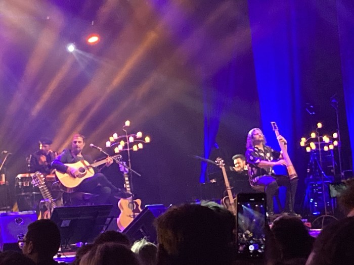 Sobre a cozinha, o Felipe Andreoli teve um show muito tranquilo – toda a execução do baixo acústico foi marcada na timbragem, sem exigir a velocidade supersônica que estamos acostumados a ouvir. Já Bruno Valverde usou bastante a bateria em muitas canções, sem economizar na força das baquetas, mas economizando nas viradas. Apesar de não ter usado, seria interessante ele conseguir encaixar em alguma música aquelas baquetas que parecem vassourinhas (usadas em acompanhamentos de Jazz e também usadas pelo Dave Grohl no acústico do Nirvana), que dá uma sonoridade bem característica para a ambientação desse show.