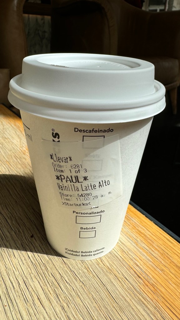10h00 – 15h30: tempo bem nublado, frio, muito vento, mas segue sem chuva e sem previsão dela. Que assim seja. Agora um descanso rápido, arrumação geral das malas para ir embora amanhã pela manhã, e, claro, o preparo para o Sir. E a tradição do café com o nome, claro.