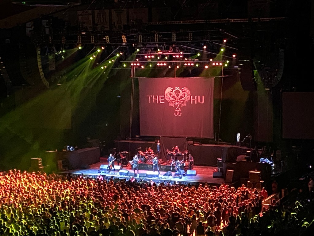 A abertura ficou por conta do The HU, banda mongol que mistura música folk local com heavy metal e sobre a qual eu nada sabia além de terem gravado um cover de “The Trooper“. Eram oito integrantes no palco, sendo dois bateristas (ou um baterista e um percussionista, talvez seja a melhor descrição), vocais duplos em diversos momentos (não backing vocals com harmonia, pareciam dobrar mesmo o vocal) e instrumentos “diferentes” que lembravam cellos – aliás a presença de palco dos integrantes me lembrou as performances do Apocalyptica. Houve pouca interação com o público durante o curto set, e em minha opinião foi uma abertura interessante mas não exatamente algo que bate com meu gosto.