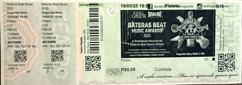 Cobertura Minuto HM – Bateras Beat Music Awards – Teatro Gazeta, São Paulo, 19/maio/2025 – pré-evento e resenha