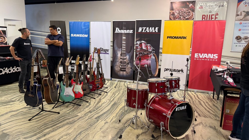O pré-evento foi marcado por exposições das marcas / patrocinadores do evento – muitas tradicionais marcas de instrumentos e acessórios – além de entrevistas lideradas pelo marketing da escola com os franquiados e outras celebridades. Correndo por fora, até eu, representando aqui o Minuto HM, dei minha palhinha…
