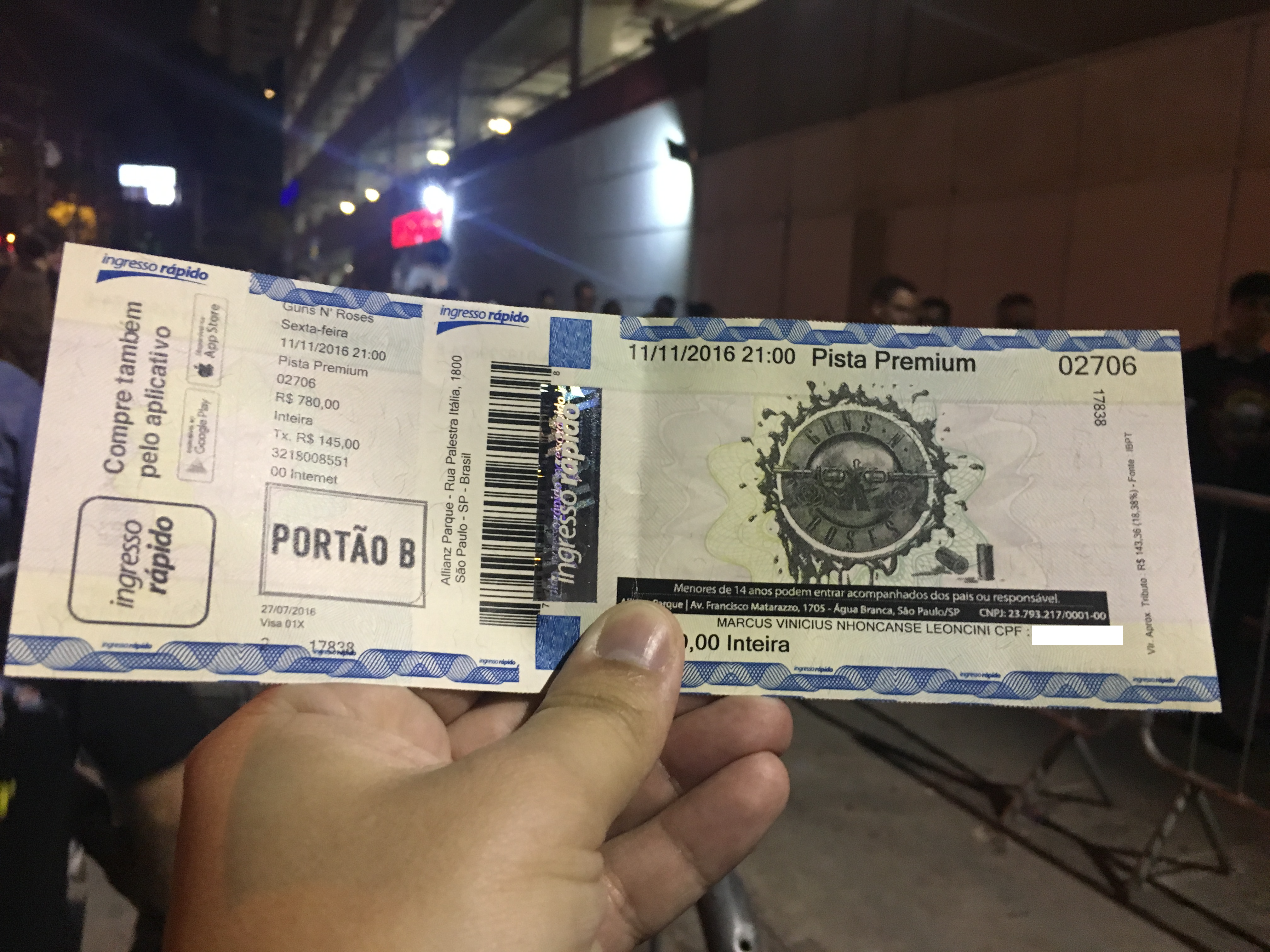 ‘ingresso-guns-n-roses-sp-not-in-this-lifetime-tour-11nov2016’ Publicado domingo, dezembro 11th, 2016 at 4032 × 3024 em Galeria de Ingressos – ano: 2016 Guns N’ Roses (Plebe Rude) em SP ‹ Voltar